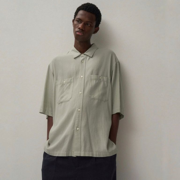 ATON[エイトン]のコットンシルクヴィエラルーズフィットハーフスリーブシャツです。