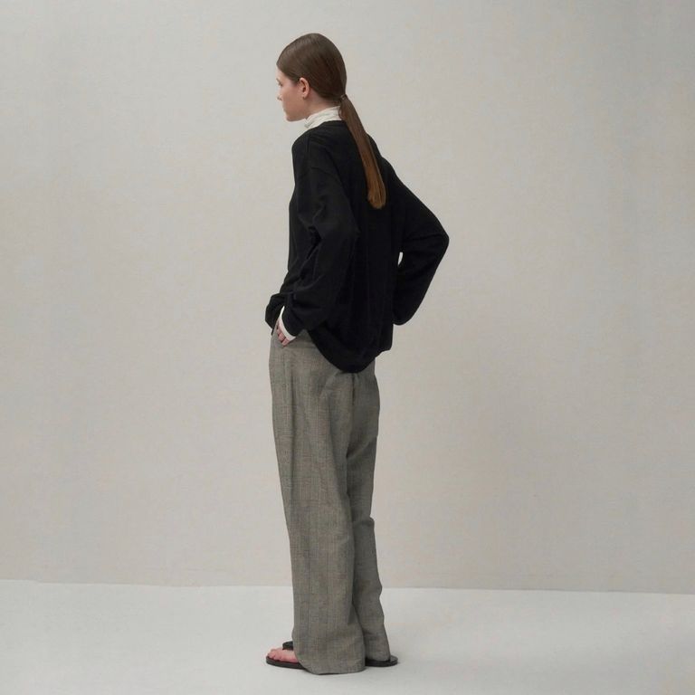 またシンプルでスタンダードなデザインが多いエイトンの洋服は、着用したときのシルエットが美しいのが特徴です。徹底的な研究で素材の特質・魅力をよく理解したうえで、デザインにおとしこまれており、着心地と着姿の両軸をきちんと考えているため、美しいだけでなく、ストレスフリーな着心地も実現されており、素材にはこだわりを持ち、良質なものを使用。
