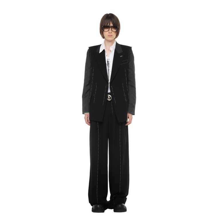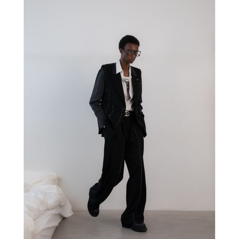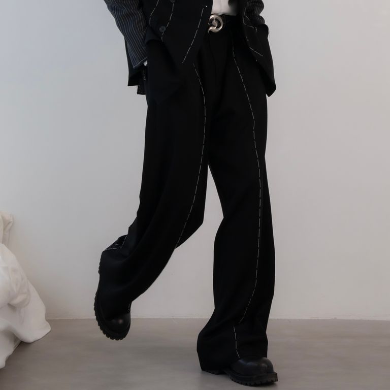 COMING SOON 2026SS COLLECTION ラスト1点 UNISEX DAIRIKU 【残り一点】"Hand Stitch" Dress Wide Slacks ¥58,300 税込 1,590 ポイント還元 発送目安日:2-3営業日 この商品は 送料無料 でお届けします 注文 サイズ(採寸)情報 質問する お気に入り サイズ ウエスト 股上 ヒップ もも周り 股下 裾周り 27 29 商品説明 DAIRIKU[ダイリク]のハンドステッチドレスワイドスラックスです。 DAIRIKU[ダイリク]についてDESIGNER : 岡本大陸氏FROM : JAPANFOUNDED : 2016年デザイナー自身が10代の時に大阪独自のユーズドアイテムやユースカルチャーに影響を受けており、自身の少年期の思い出や、映画、様々な国のカルチャー、音楽の要素などをベースに展開するユニセックスブランド。ブランドコンセプトは「ルーツやストーリーが感じられる服」。ブランド名に自身の名前を用いているように、自身の経験と心境をもとにデザインを進めております。古着から着想、守るべき部分は守りながら、現代合うように再解釈・アップデートさせたプロダクトが魅力的なブランドとなっております。 詳細情報 カラー BLACK 素材 WOOL99% / NYLON1% ブランド DAIRIKU 品番 26SS B1[BLACK] カテゴリ パンツ・ボトムス > スラックス 性別 ユニセックス 返品 返品可能条件はこちら ラッピング 可能 発送目安日 2-3営業日 配送方法 佐川急便(送料について) お支払い方法 本商品でご利用可能な決済方法は下記となります。各お支払い方法についての詳細はショッピングガイドをご覧ください クレジットカード払い セキュリティコードとはクレジットカード裏面のサイン欄上部に記載されている数字の一番右の3桁の数字です。アメリカン・エキスプレス・カード提携のクレジットカードの場合、セキュリティコードはクレジットカード表面に記載されている4桁の数字となります。 Amazon Pay 楽天ペイ 銀行振込 3営業日(土日祝は含まず)以内にお振込みください。ご入金を確認次第、入金確認メール(通常商品)又は予約受付完了メール(予約商品)を送信いたします。 あと払い (ペイディ) 事前登録不要、クレジットカード登録不要。 メールアドレスと携帯電話番号だけで、今すぐ購入可能。 お支払いは翌月27日までに、コンビニ払い・銀行振込・口座振替で。 1か月に何度購入しても、お支払いは翌月まとめて1回でOK。 さらに、ペイディアプリから本人確認をすると、分割手数料無料*の3回あと払い**、ご利用可能額の確認、使い過ぎを防止する予算設定など、便利な機能がご利用いただけます。 *口座振替・銀行振込のみ無料 **1回のご利用金額が3,000円以上の場合のみ利用可能 代金引換(現金/クレジットカード) 配達時に現金で決済が可能な代金引換サービス。 ご予約、お取り寄せでのご注文ではご利用いただけません。 サイズ(採寸)情報 サイズ ウエスト 股上 ヒップ もも周り 股下 裾周り 27 29 このアイテムをシェア この商品について質問する お問い合わせの入力内容が失われますがよろしいですか?