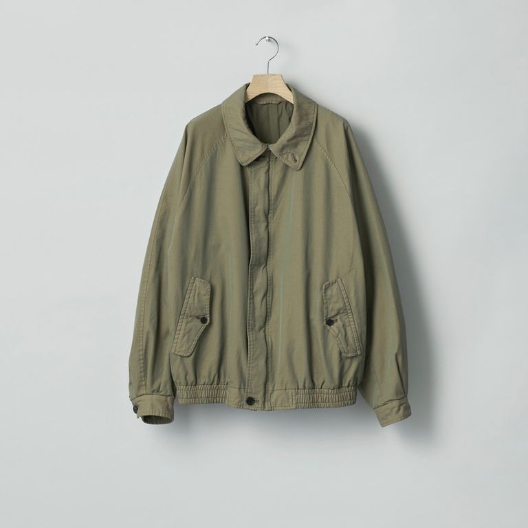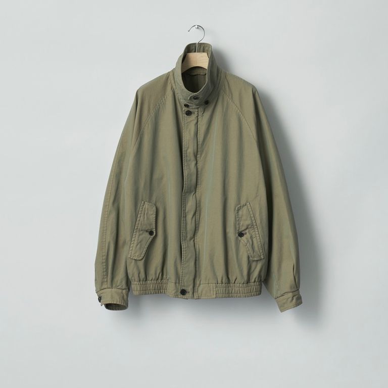 高密度に織り上げたギャバジンに撥水加工を施した素材を使用し製作を行なった本作。着古したような全体の印象が魅力のハリントンジップジャケットです。