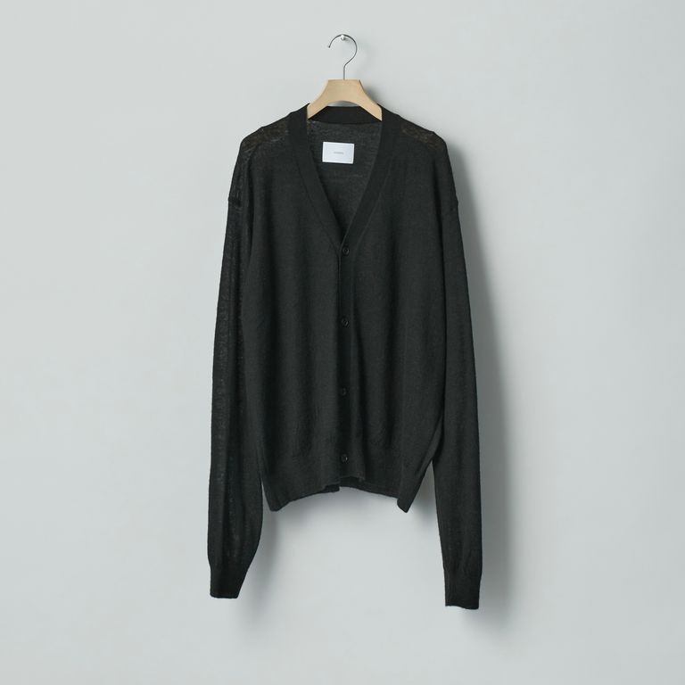 アルパカの中でもより繊維が細く、滑らかさに優れたベビーアルパカ、ウールナイロンの極細糸を使用し製作を行なった本作。すっきりめの丈に設定したニットカーディガンです。