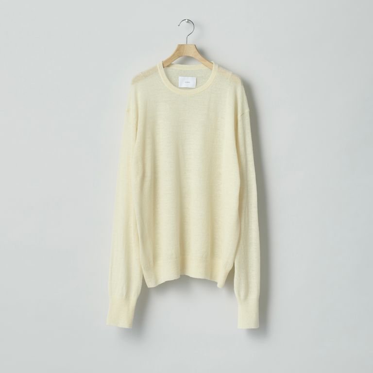アルパカの中でもより繊維が細く、滑らかさに優れたベビーアルパカ、ウールナイロンの極細糸を使用したクルーネックニットです。