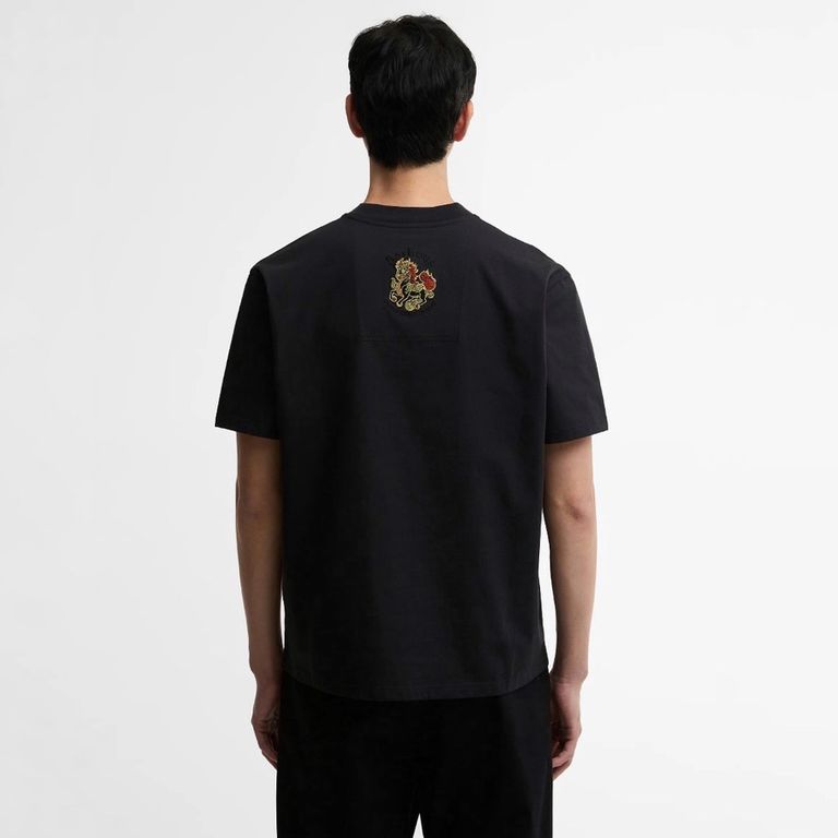 ダブルネーム・両ブランドのエッセンスを合わせて製作を進めた本作。フロントの左胸と背面のネックセンターに、コラボレーションを象徴するダブルネームの刺繍を配置したS/S TEEです。
