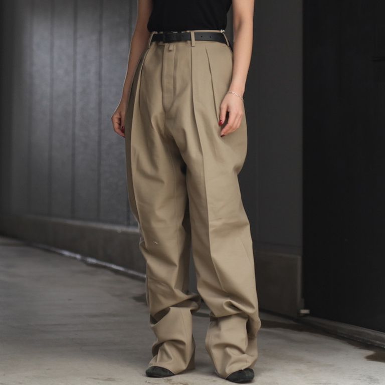 クラシックスタイルのドレススラックスのような丁寧で上質なディテールを基調とし、現代的にアレンジされたパンツは、Tシャツやスニーカー、サンダルなどと合わせても、きちんと見えるバランスに仕上げられています。また製品はハイエンドなインポートファブリックから、軍モノデッドストック、貴重なビンテージ生地まで、幅広い素材を採用。現代的なシルエットと日本人に合う穿き心地の良さに拘り、上質かつ丁寧なモノづくりを行い素晴らしい穿き心地を体感させてくれます。
