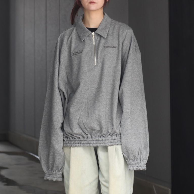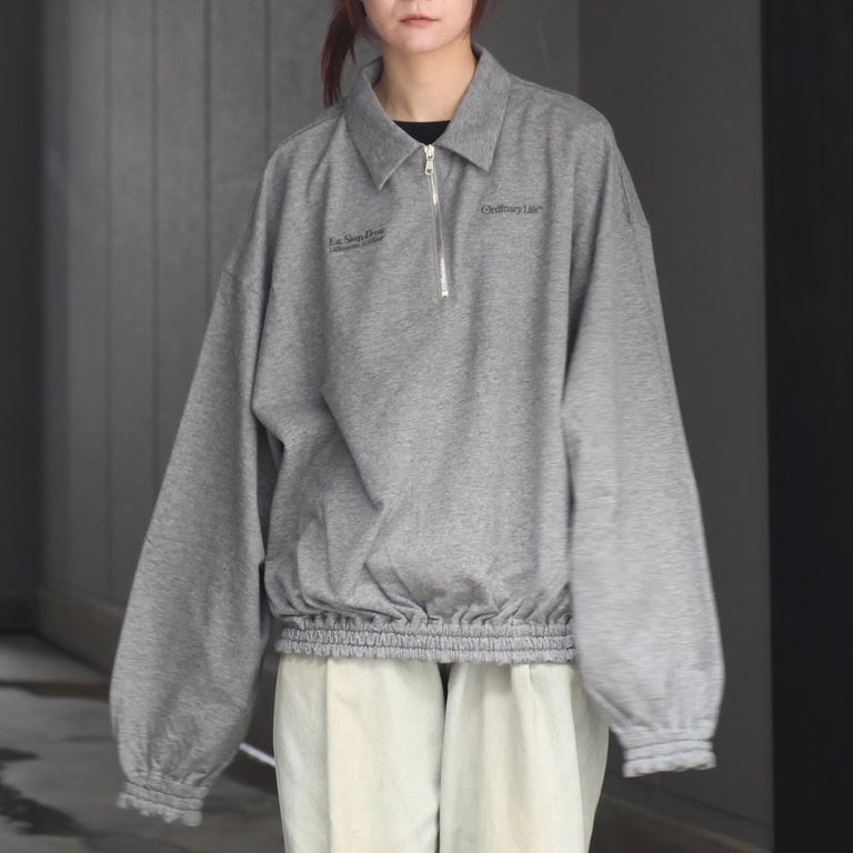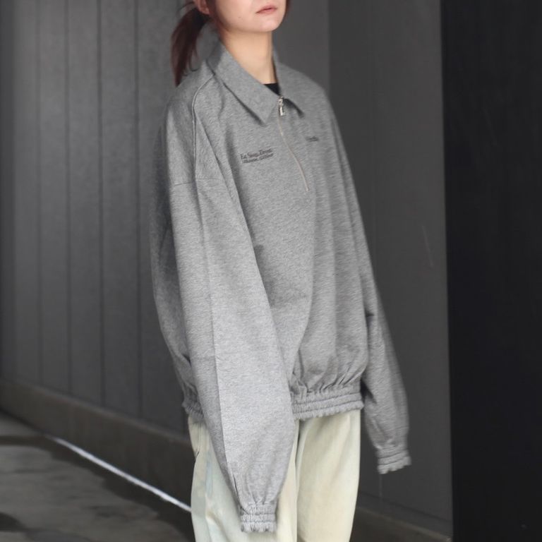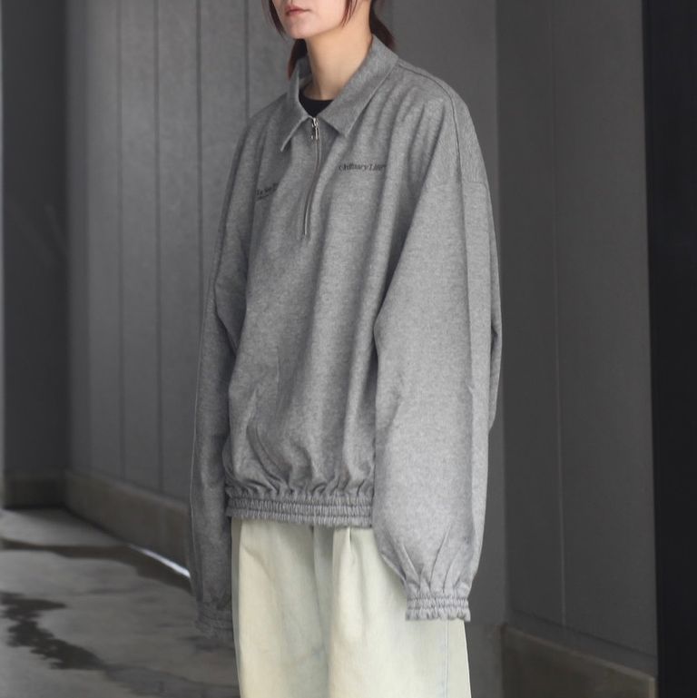 高密度のフリース生地を使用し製作を行なった本作。襟付きハーフジップのプルオーバースウェットです。