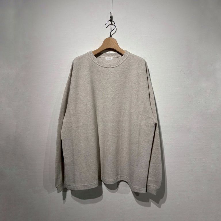 毎シーズン定番人気の肉厚のコットン鹿の子素材で編み立てた本作。ドロップショルダーにゆったりとした身幅、少し長めの袖丈と着丈は大人の余裕を感じる気品のあるリラックスしたシルエット。