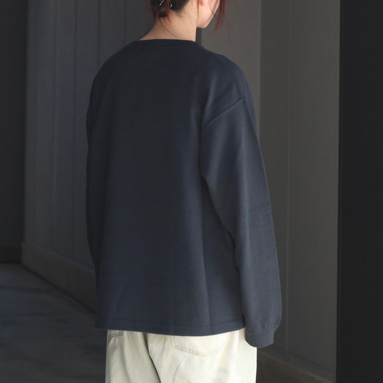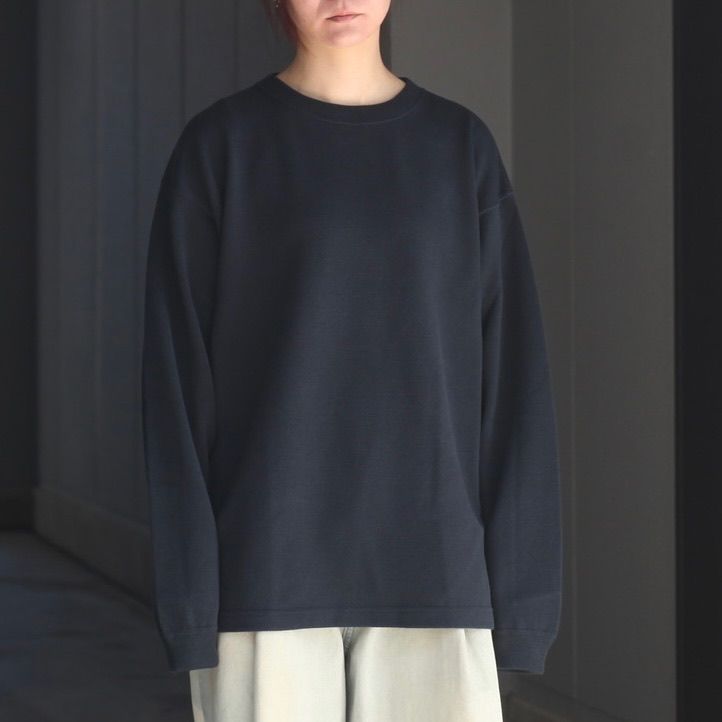 毎シーズン定番人気の肉厚のコットン鹿の子素材で編み立てた本作。ドロップショルダーにゆったりとした身幅、少し長めの袖丈と着丈は大人の余裕を感じる気品のあるリラックスしたシルエット。