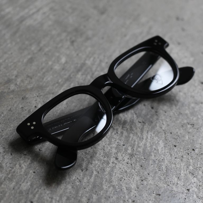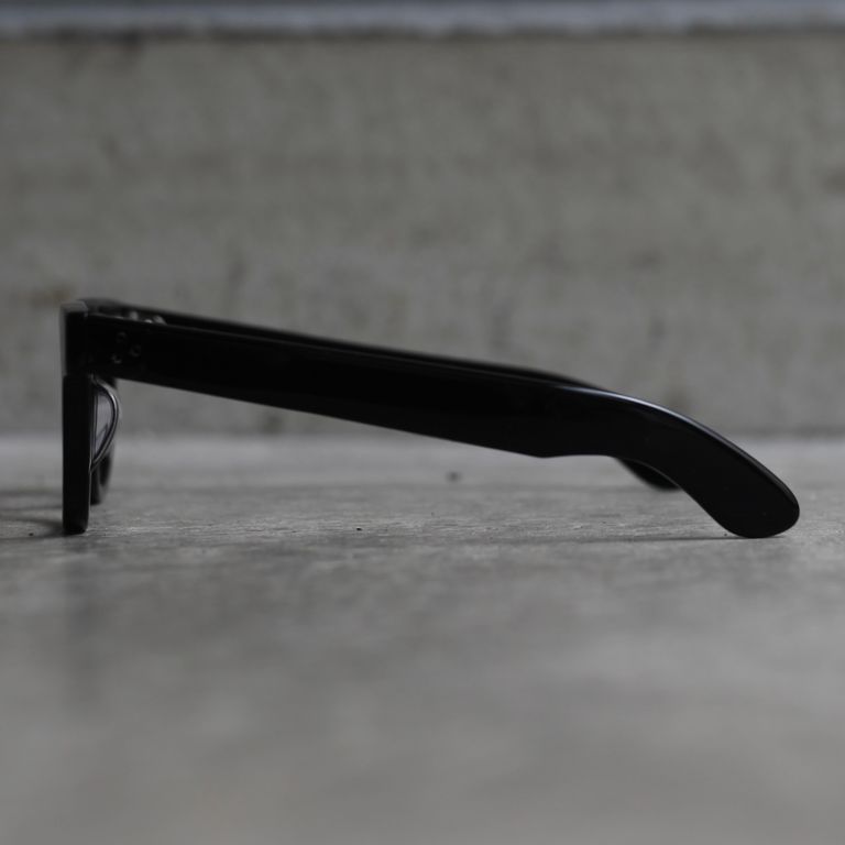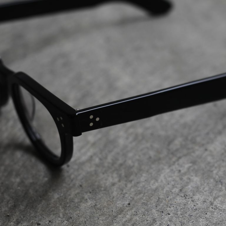 フロントの3点カシメ鋲、幅広のテンプル、テンプルエンドのエッジ感など主張が強いディテールですが、フロントからテンプルにかけての流れるような美しいラインも併せ持っています。オールシーズンでご愛用いただけるお奨めアイテムとなっております。