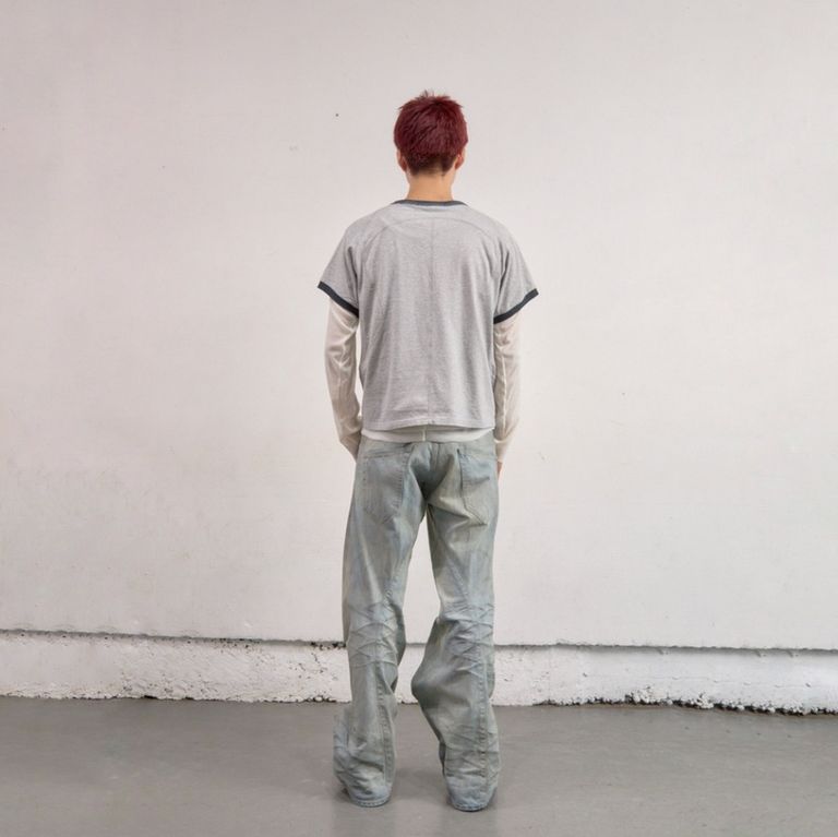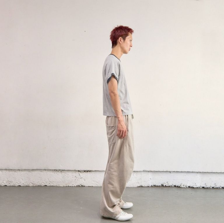 50/2コットン天竺を使用し製作を行なった本作。クロップドレングスのハーフスリーブのリンガーTシャツです。