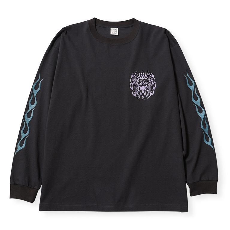 CALEE[キャリー]のヴィンテージタイプフレイムロゴピンストライピングTEE L/Sです。