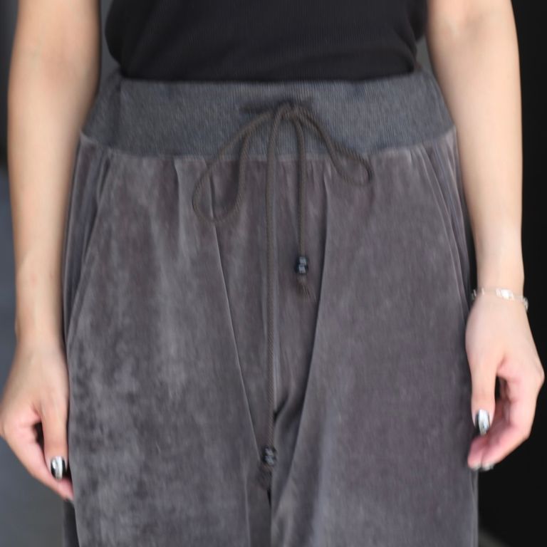 人間工学に基づいた立体裁断で3Dパターンメイキングを駆使し、膝や足回りの動きやすさを解放する為にサイドシームが大きく捻じれたデザインが特徴です。ゆったりとしたシルエットですが立体裁断により野暮ったくならず、洗練されたシルエットを形成します。サイドシーム利用のシームポケット。カーゴバックポケット。ウエストコード先端にはオニキスやタイガーアイの天然石ビーズ装飾。オールシーズンでご愛用いただけるお奨めアイテムとなっております。