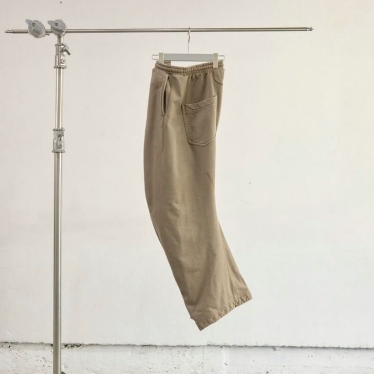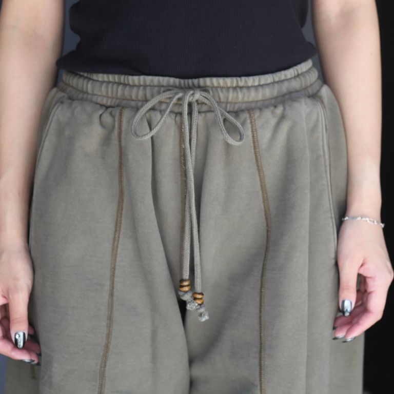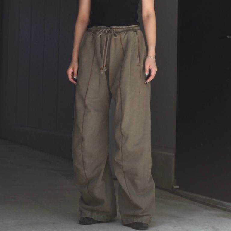 オーガニックコットンヘビー裏毛を使用し製作を行なった本作。オーバーダイ+ボールバイオウォッシュ加工によるヴィンテージ感が特徴のワイドシルエットラウンジパンツです。