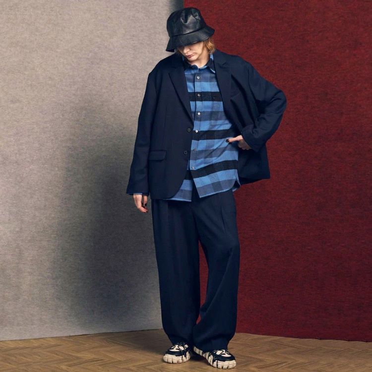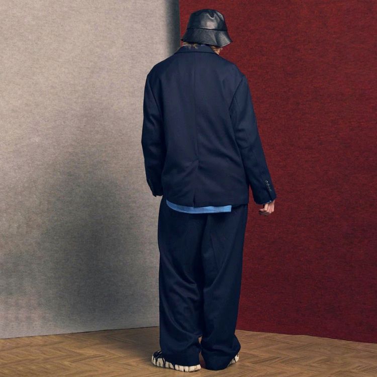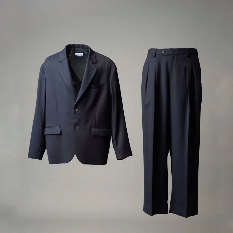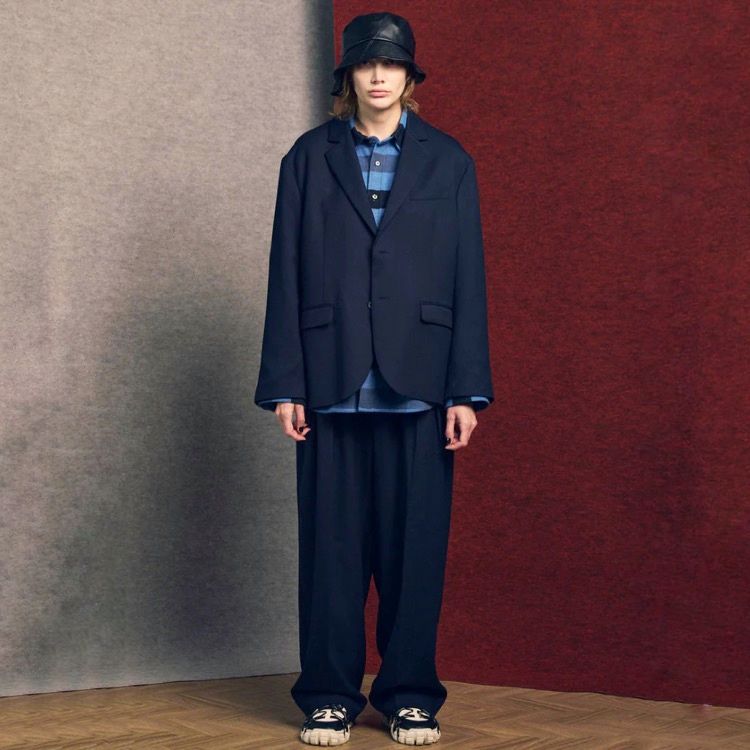 MAISONSPECIALらしいオーバーサイズをベースに、程よくリラクシングなサイズ感に。ジャケットはたっぷりとした身頃にドロップショルダーが抜け感を演出。半裏仕様にすることで通年通してご着用頂くことが出来ます。パンツは腰回りをゆったりさせながら裾にかけてストンと落とした、クラシックなインタックの迫力のあるツータックワイドシルエット。人間の動きを考慮して作成された独自の立体的なパターンは、見た目の綺麗なシルエットを維持しつつも着心地にストレスを感じないものになっております。肩から首にかけて立体的に仕上げ、脇下の身頃など生地分量を調節することにより運動量を確保し、抜群の動きやすさを追求。