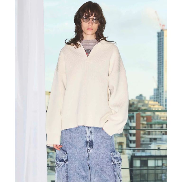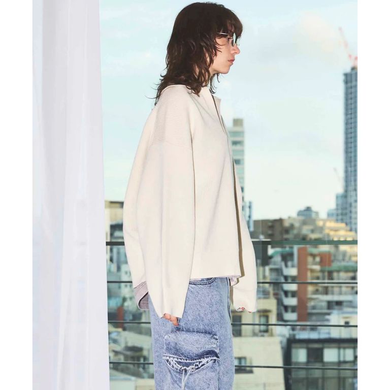 MAISON SPECIALの代名詞ともいえるサイズ感。身幅、アームともに非常に大きく取り、肩をしっかりと落としたドロップショルダーから成る特徴的なオーバーシルエット。アイテムそのものの品の良さが、オーバーサイズでも野暮ったく感じさせない大人のオーバーサイズシルエットに仕上げております。オーバーサイズながら野暮ったくならず、スキッパー仕様の首元が抜け感ある大人な印象を演出する1着。インナーにはクルーネックでもハイネックでもどんなスタイリングにも取り入れやすいアイテムに仕上げました。凹凸のある畦編みが無地ながら表情豊かに演出してくれる、コーディネートの相棒として着回し易いアイテム。
