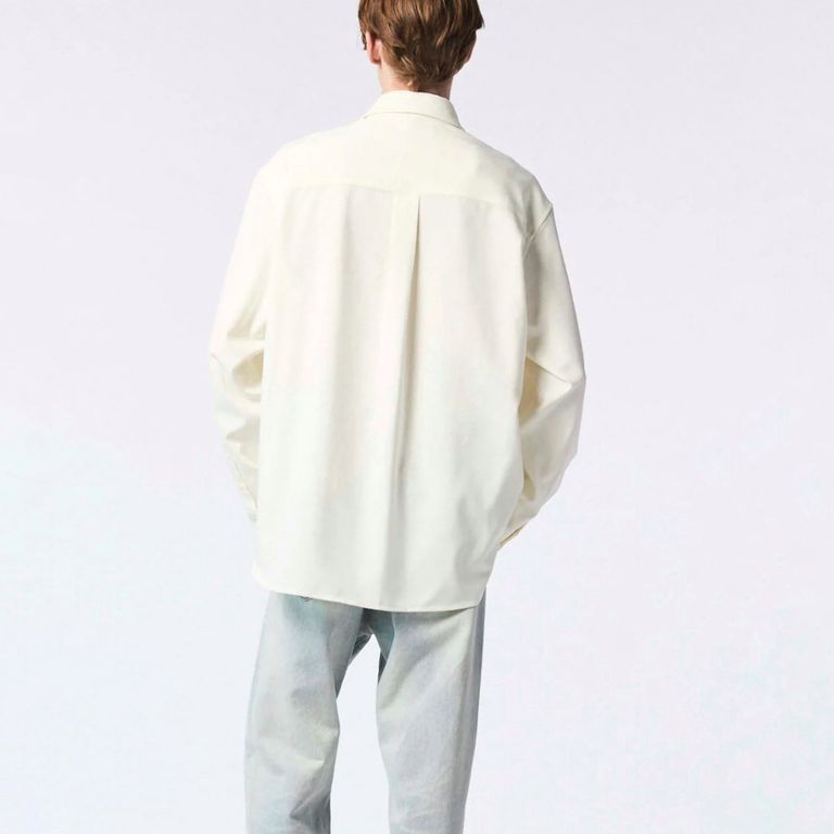 MAISON SPECIALの代名詞ともいえるサイズ感。身幅、アームともに非常に大きく取り、肩をしっかりと落としたドロップショルダーから成る特徴的なオーバーシルエット。肩先の傾斜を強くつけることで、ドロップショルダーながら袖が肩にフィットしてメリハリのあるシルエットに。体の構造に合わせたサイズ設定。前後のサイズ設定のバランスを考え、より袖が前に振りやすく人の動きを考えた設計に。現代のファッションシーンに合わせたオーバーサイズなシルエット設定ながら、肩や襟ぐりなど体にフィットさせる部分と、空間にゆとりを持たせる部分を意識的に作り、メリハリの効いたシルエットを実現。