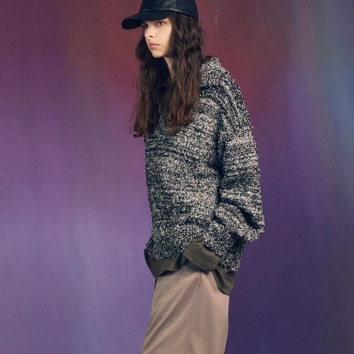 奥行きのある異素材感で攻めるワンランク上のニット。ベーシックカラーをベースにビビッドなカラーをミックスすることで、抜け感とエッジのある都会的なムードに。1枚で存在感抜群な主役級の1着。