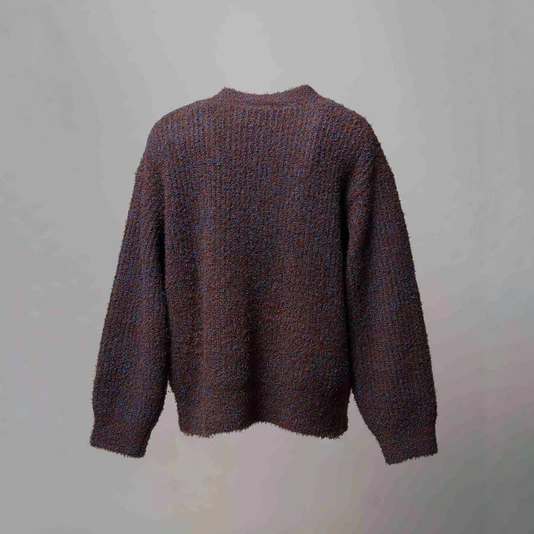 ポリエステルの糸を使用。ランダムなループヤーンを使用し、見た目のインパクトもさることながら、肌触りも良く快適な着心地を実現。