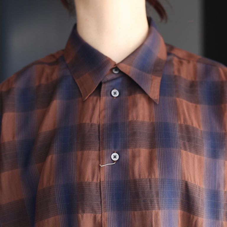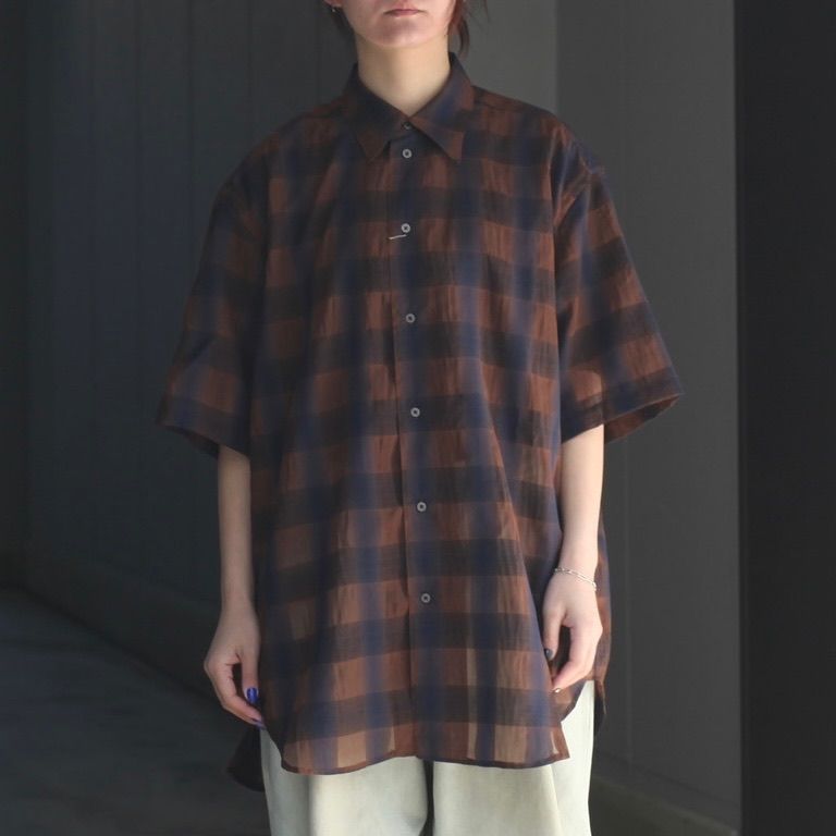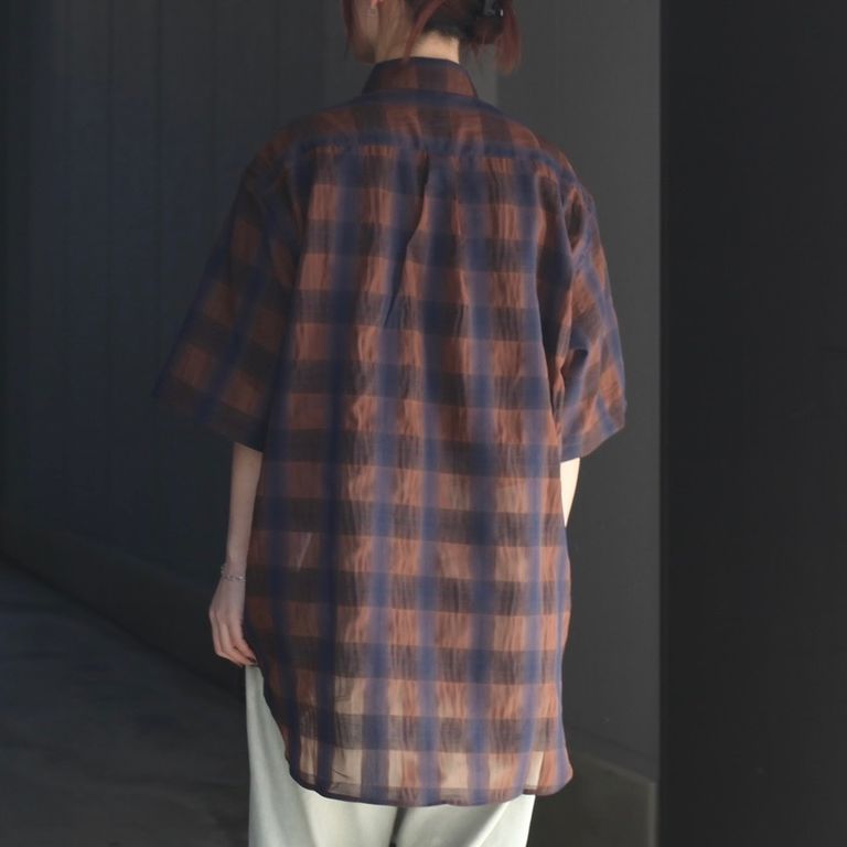 リサイクルポリを使用したシアー感のあるチェック生地を使用し製作をおこなた本作。程よくリラックスフィットなS/Sシャツです。