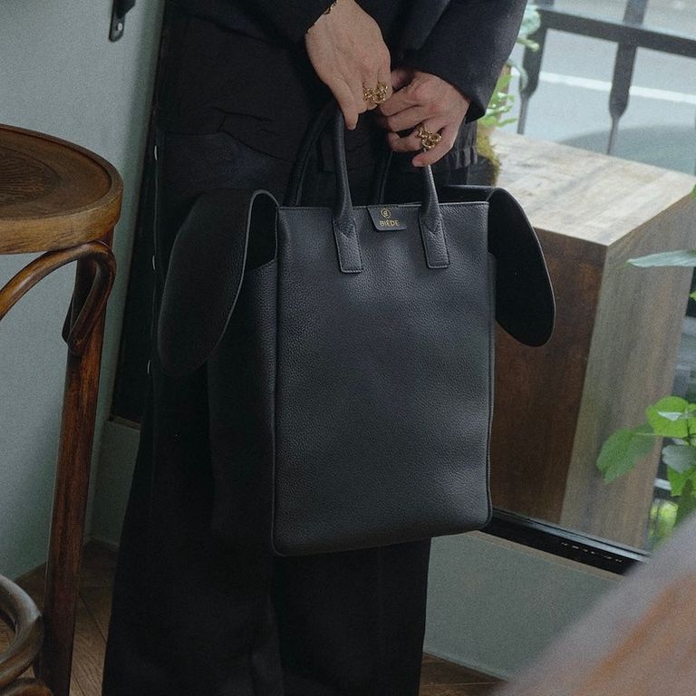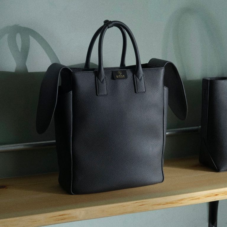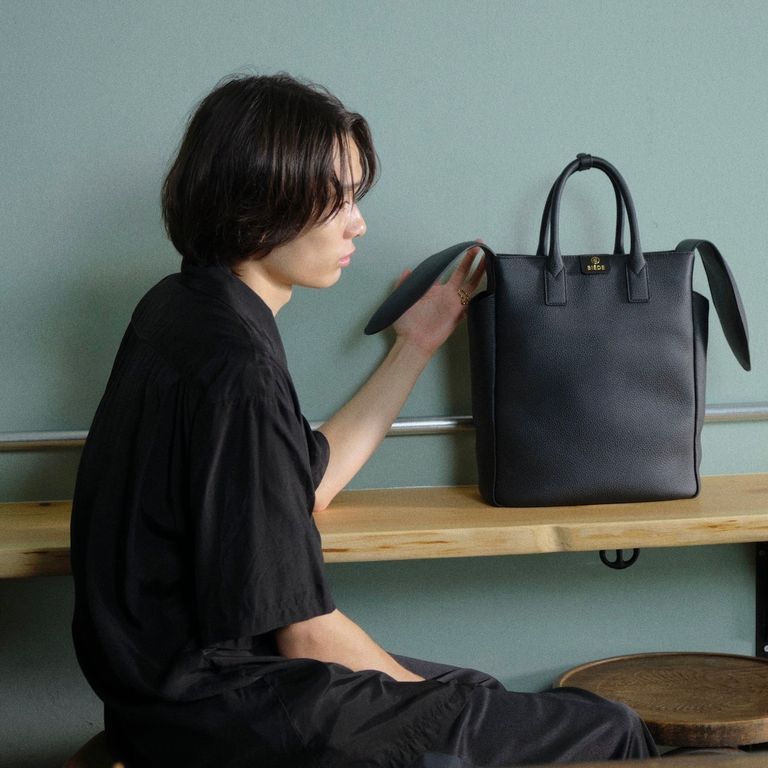 BIÉDEのロゴにある「∉」の記号は、「~に属さない(Not an element of)」を意味する記号です。ファッションと社会における「所属する/所属しない」、また「所有する/所有しない」という根本的な問いを表す記号がBIÉDEのシンボルとなっています。