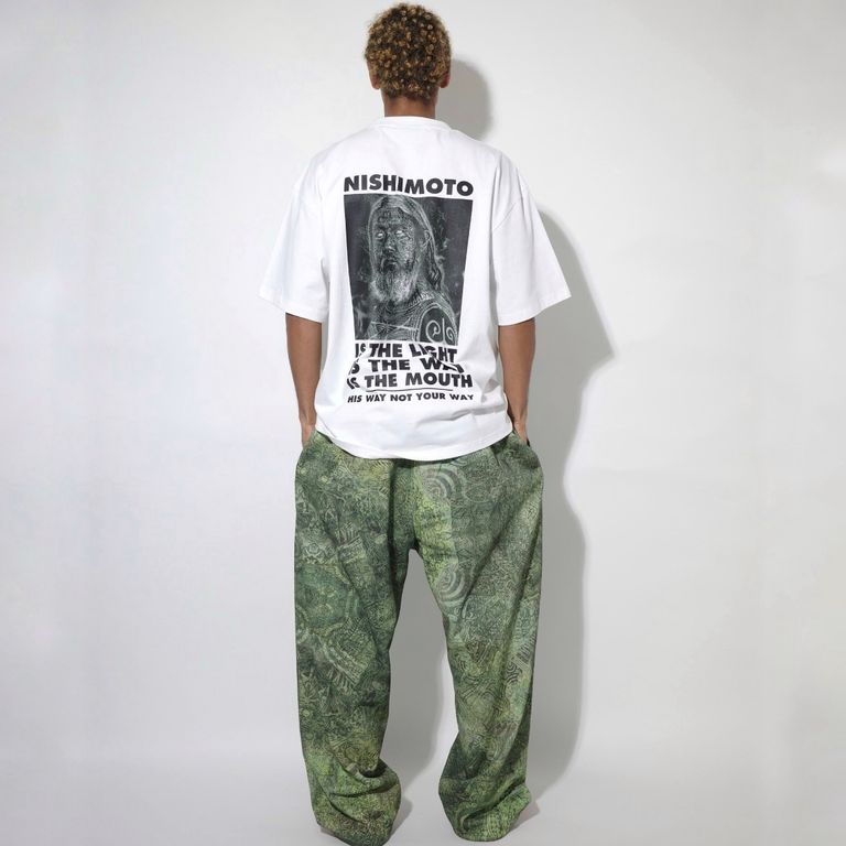 NISHIMOTO IS THE MOUTHは、架空のカルト宗教クラブから展開される日本のユニセックスブランド。Drake(ドレイク)、Virgil Abloh(ヴァージル・アブロー)、Tom Sachs(トム・サックス)、Peter Sutherland(ピーター・サザーランド)、他にも多岐にわたる世界的に有名なアーティストやデザイナー、写真家や作家などが、着用したことでアメリカを中心に注目され始める。当時は、友人、知人にのみ配布する形で流通されていたが、2020年より精力的に活動を開始。