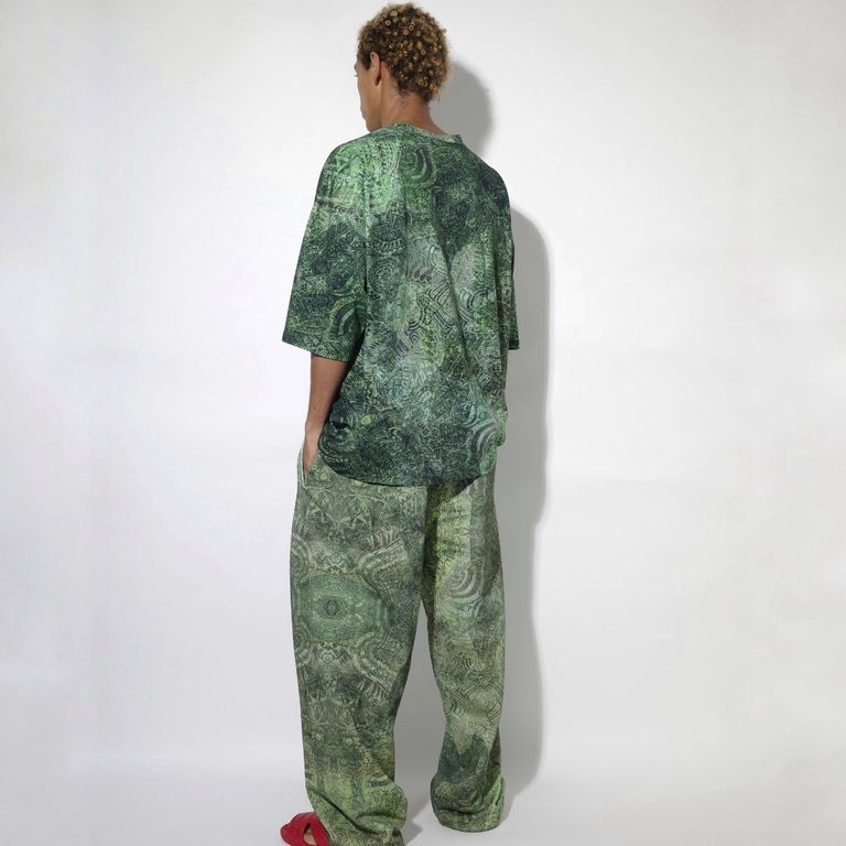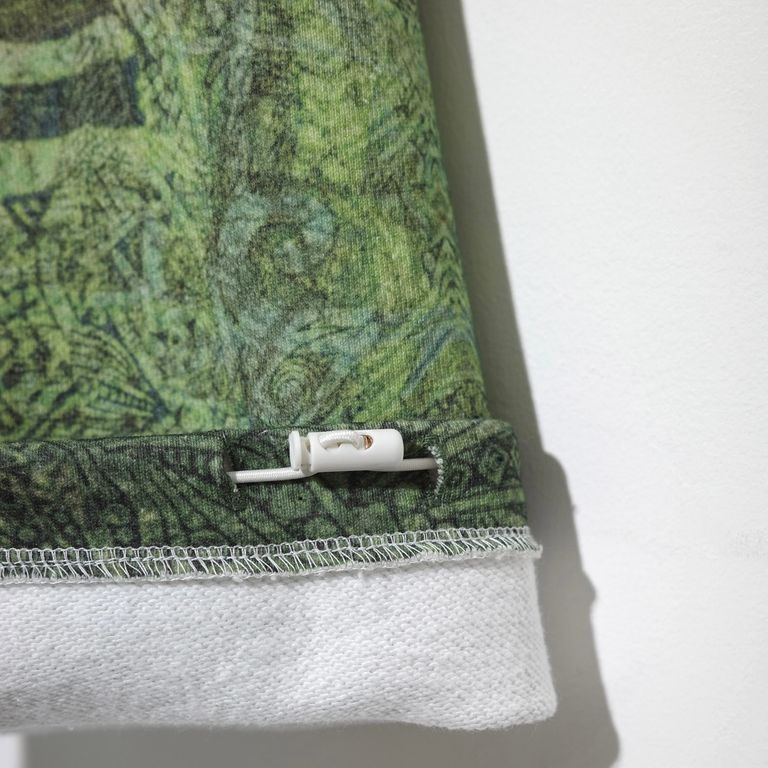 生地全体にプリント、サイドポケット、ウエスト内側と裾にドローコードの仕様が施されております。