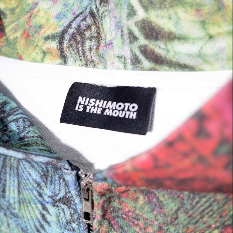 NISHIMOTO IS THE MOUTHは、架空のカルト宗教クラブから展開される日本のユニセックスブランド。Drake(ドレイク)、Virgil Abloh(ヴァージル・アブロー)、Tom Sachs(トム・サックス)、Peter Sutherland(ピーター・サザーランド)、他にも多岐にわたる世界的に有名なアーティストやデザイナー、写真家や作家などが、着用したことでアメリカを中心に注目され始める。当時は、友人、知人にのみ配布する形で流通されていたが、2020年より精力的に活動を開始。