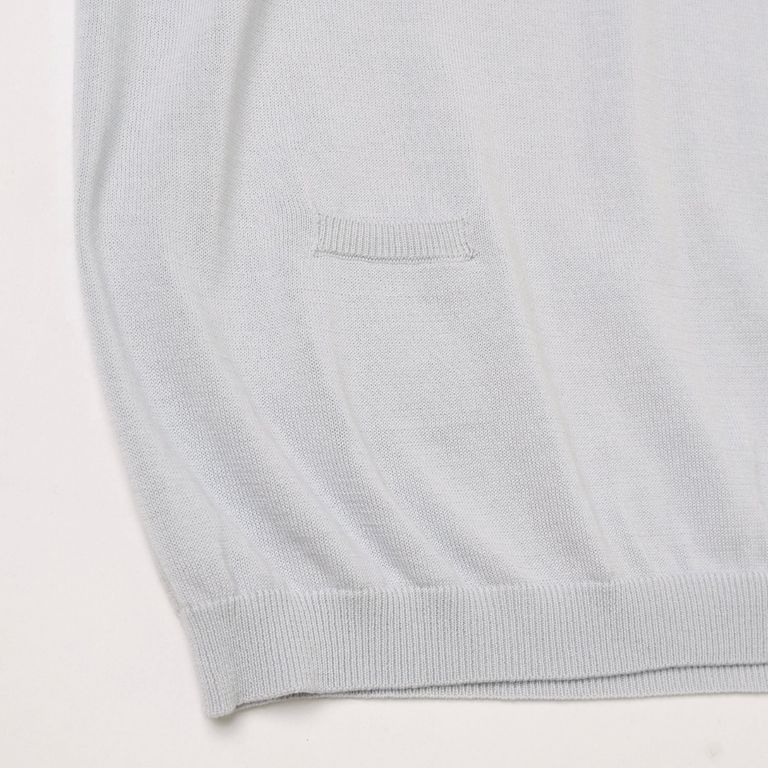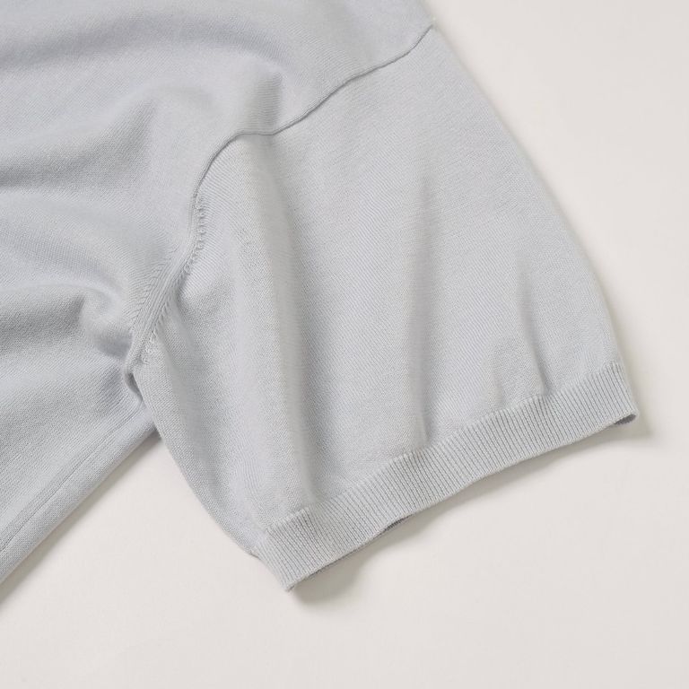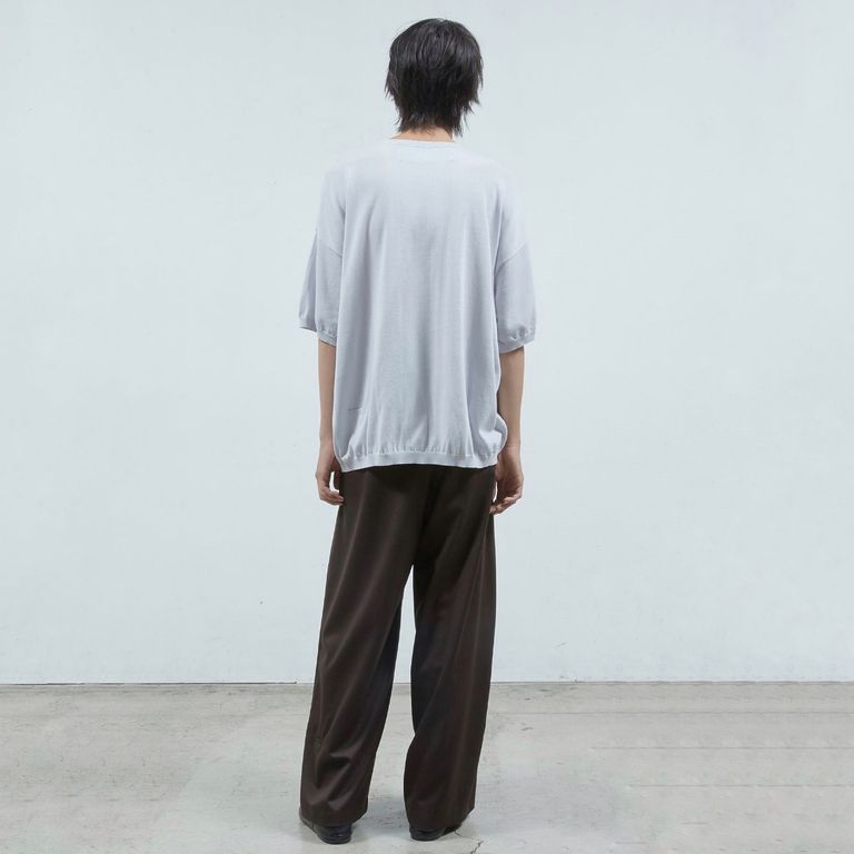 カジュアルなTシャツとは異なり、上品な印象で着用いただけます。フロントには、生地をつなぎ合わせる縫製=ステッチをアートのように描きました。今季を象徴するモチーフ。背面にはアイコン的ディテール「小さなポケット」の装飾も加えました。一枚着からインナー使いまでオールシーズンでご愛用いただけるお奨めアイテムとなっております。