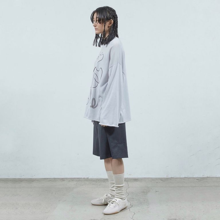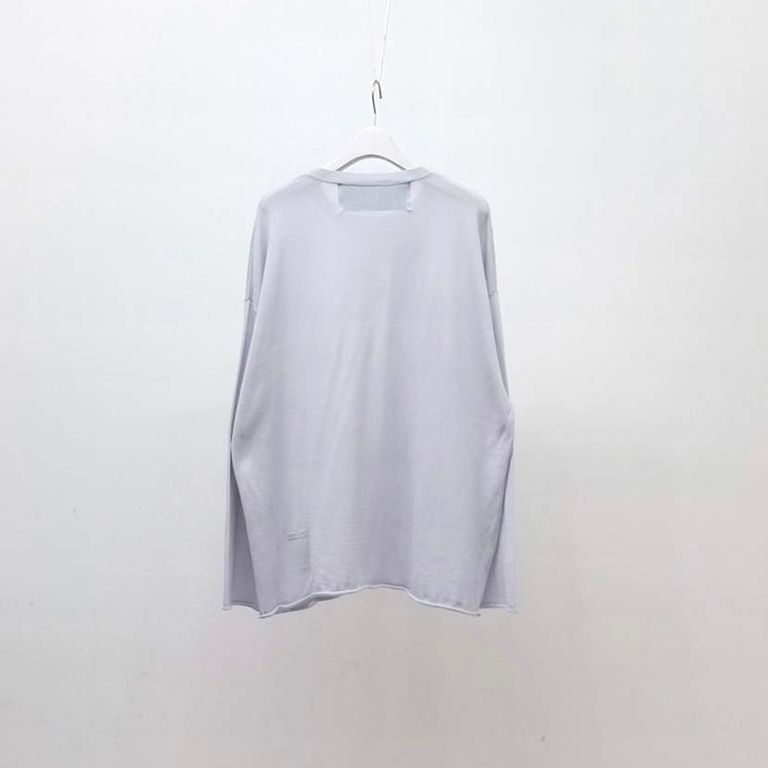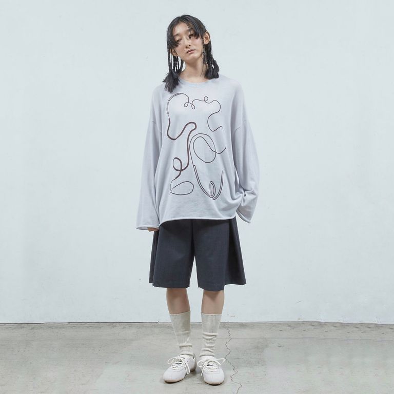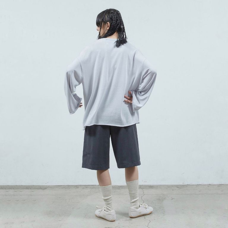 フロントには、生地をつなぎ合わせる縫製=ステッチをアートのように描きました。今季を象徴するモチーフ。背面にはアイコン的ディテール「小さなポケット」の装飾も加えました。一枚着からインナー使いまでオールシーズンでご愛用いただけるお奨めアイテムとなっております。