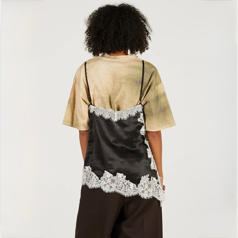 モダンなランジェリーライクトップで洗練された大人のワードローブに。幅広いシーズンでご愛用いただけるお奨めアイテムとなっております。