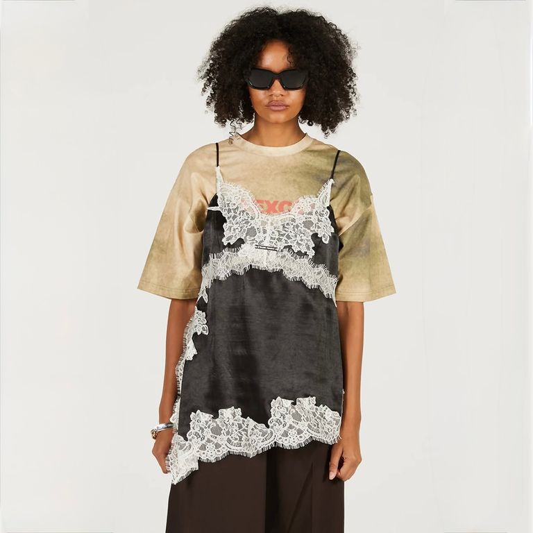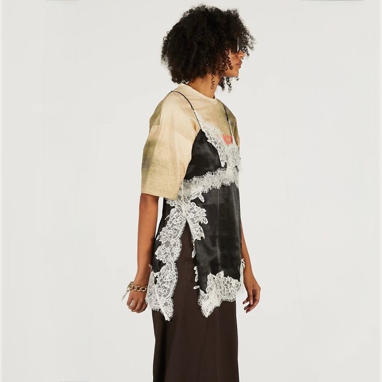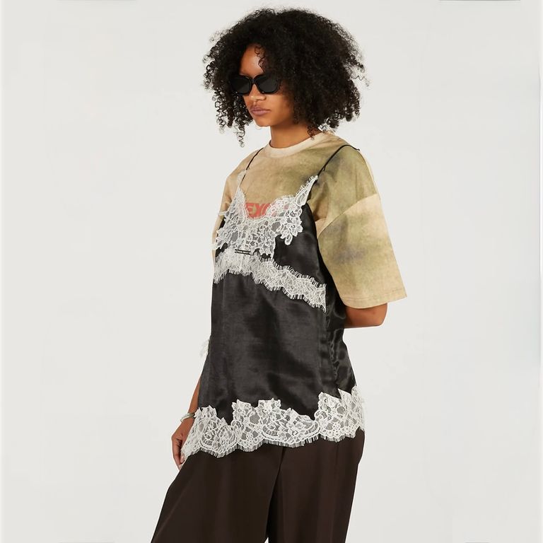 レースの持つ甘さを、構築的なデザインでモードに昇華。細いストラップと繊細なレースが生み出す軽やかな抜け感は、一枚でも、レイヤードでもシーズンレスに活躍。メンズライクなブルゾンやジャケットのインナーとして合わせれば、コントラストの効いたスタイルが完成します。