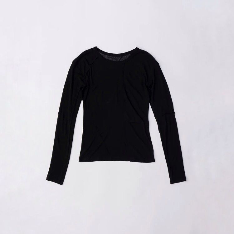2枚重ねでインナー側が透けるニュアンス感がキャッチーな印象に。綿でしか出せないリラックス感とタイトなシルエットのモード感が両立した大人な一着。インナー側にはダーツ、アウト側にはアシメな切り替えが入っている仕様です。サイズ感も襟ぐりや袖口、裾にインナーがのぞくように差寸を付けたデザインになっています。