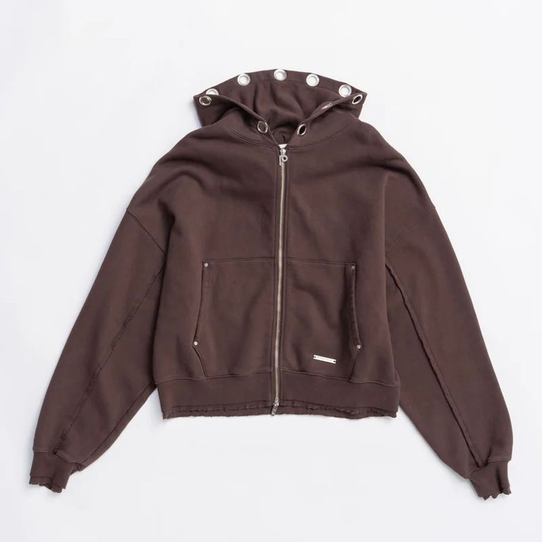 同ブランド定番人気の本作フード口に施したアイレットがインパクトあるスウェットパーカーです。