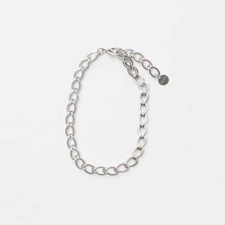 同ブランド定番人気の本作。長さ調整により、チョーカーとしても使用可能なシルバーネックレスです。