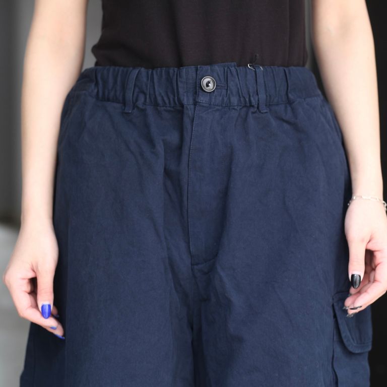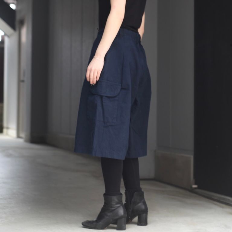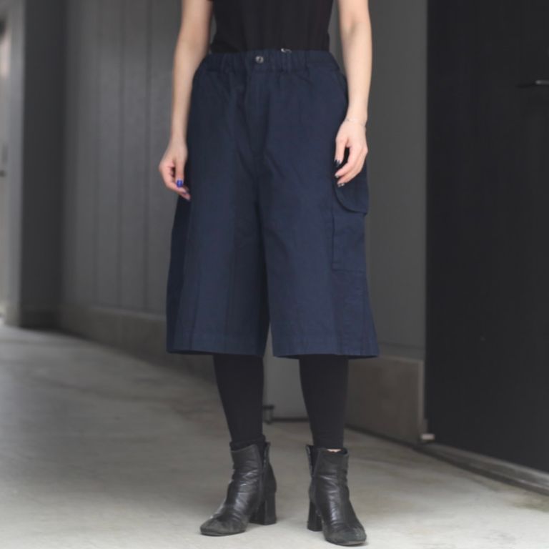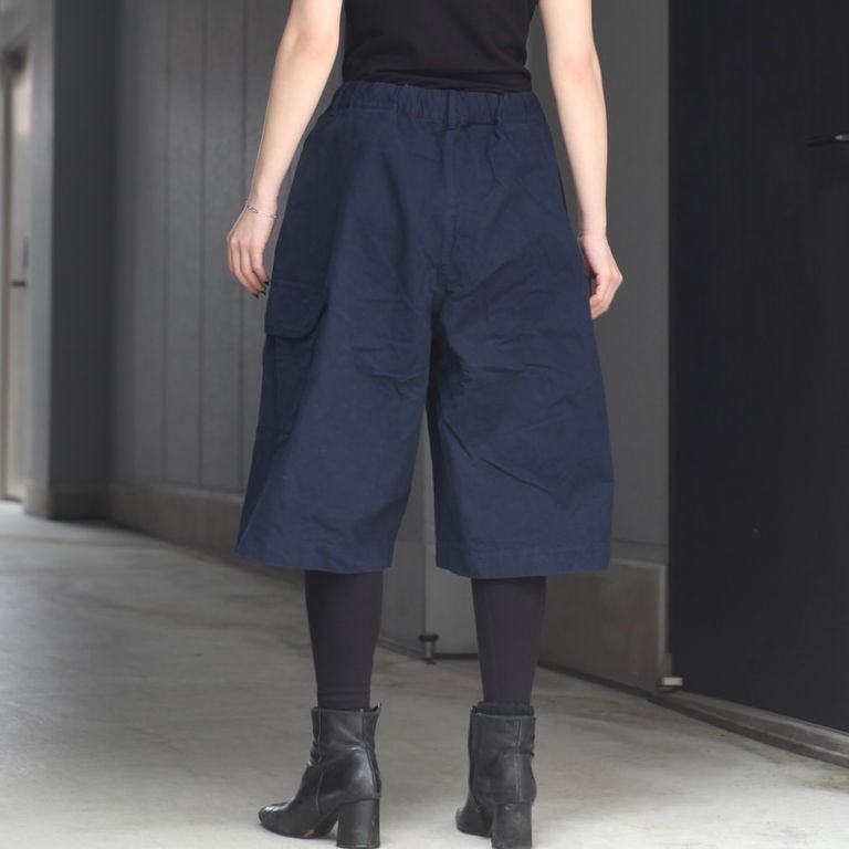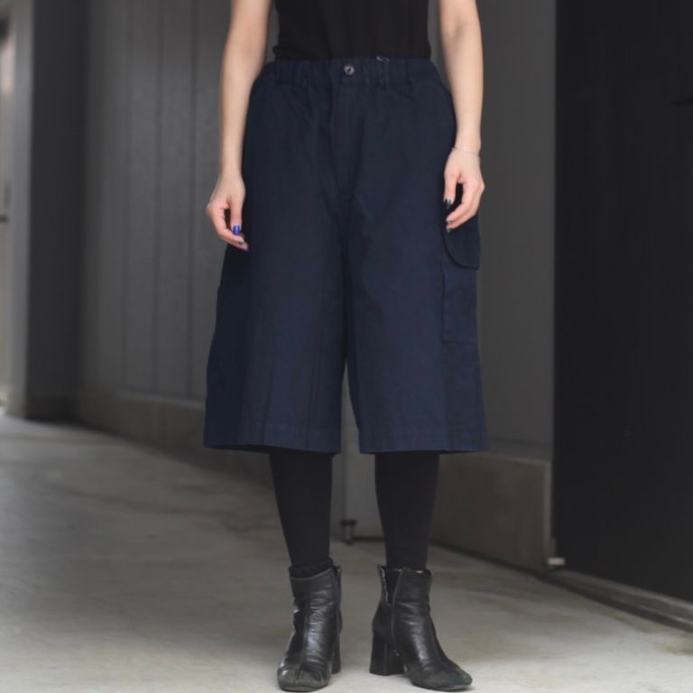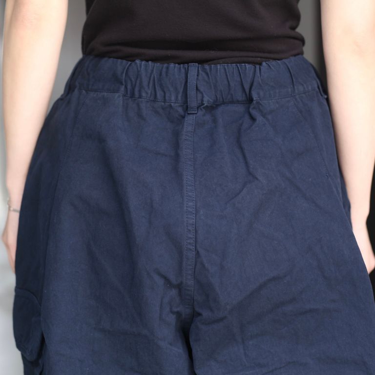 40番手高密度で織り上げたウェザークロスを使用し製作を行なった本作。近江晒で揉み洗いし、製品染めする事で、着込む程に馴染むのが特徴のワイドショーツです。