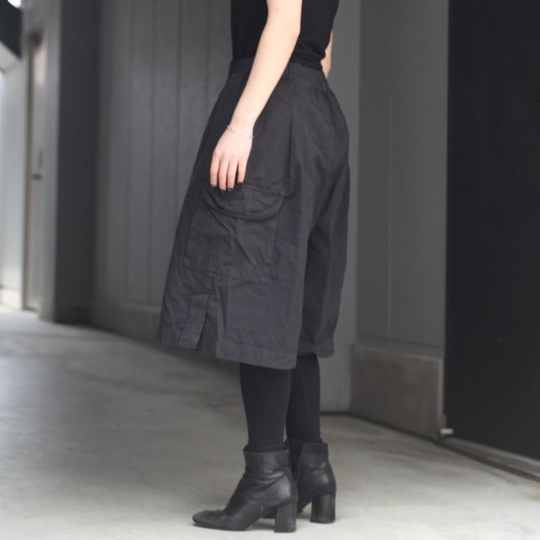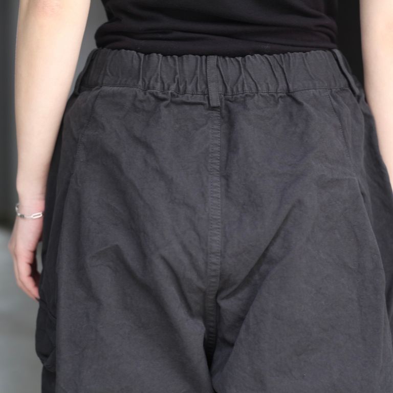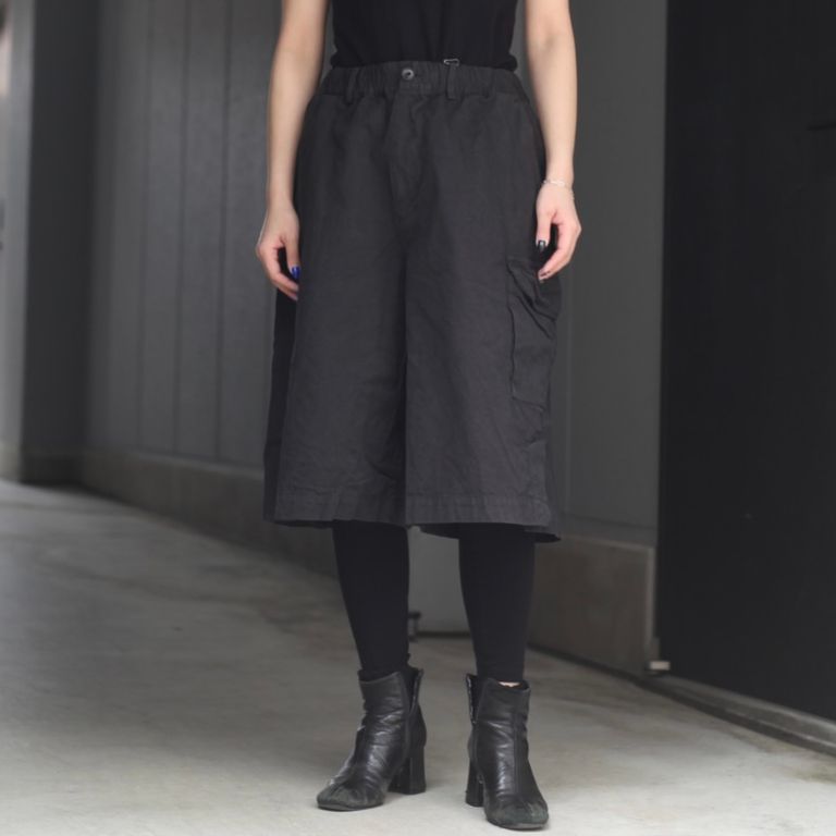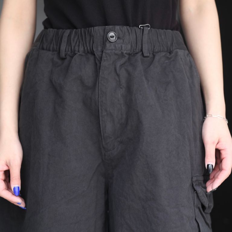 40番手高密度で織り上げたウェザークロスを使用し製作を行なった本作。近江晒で揉み洗いし、製品染めする事で、着込む程に馴染むのが特徴のワイドショーツです。