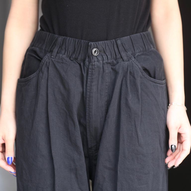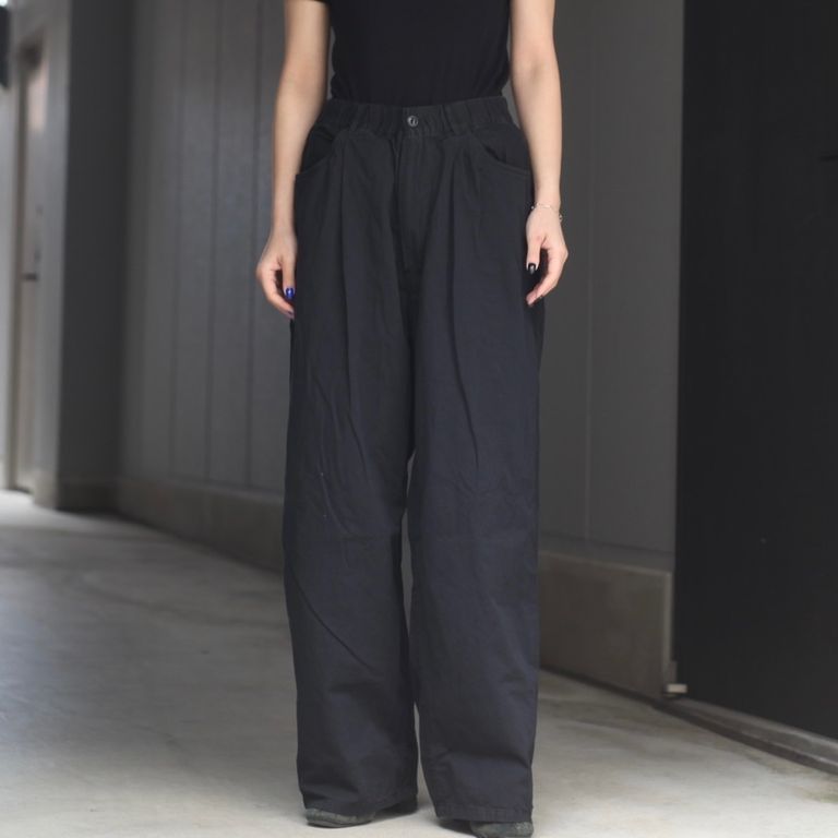 経糸にロープ染色を施したナチュラルなムラ糸が特徴の6オンスライトデニムを使用し製作を行なった本作。ゆとりがあるシルエットのワイドデニムパンツです